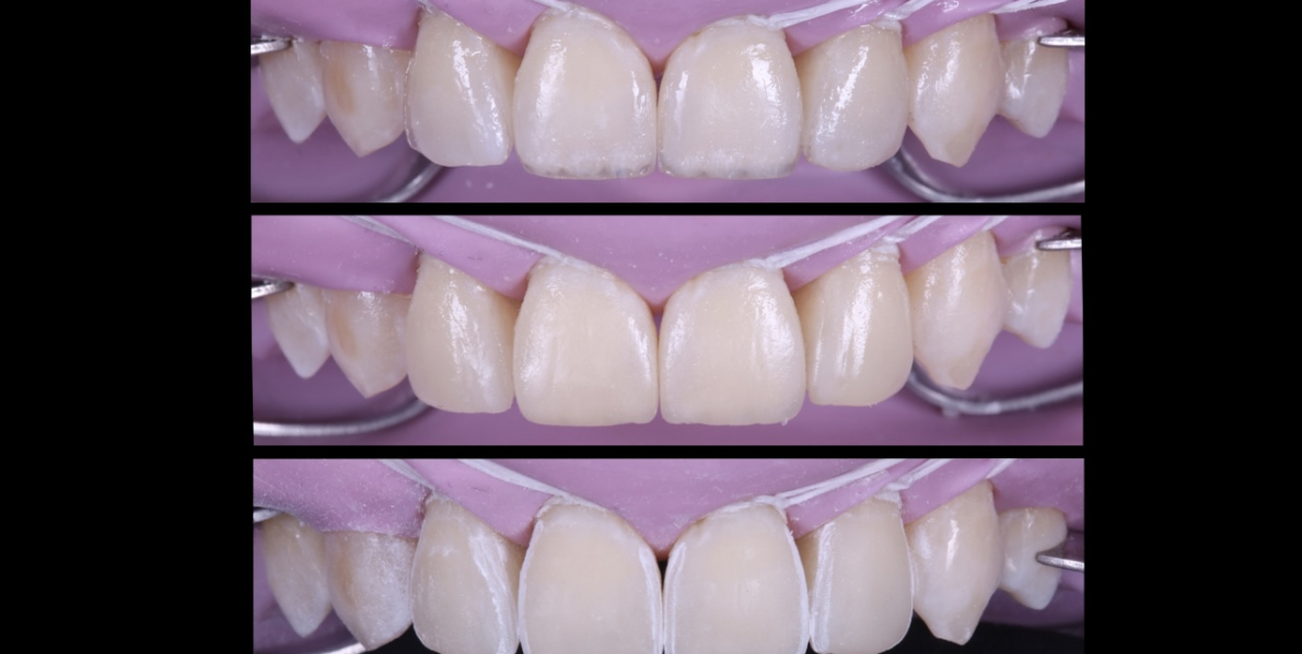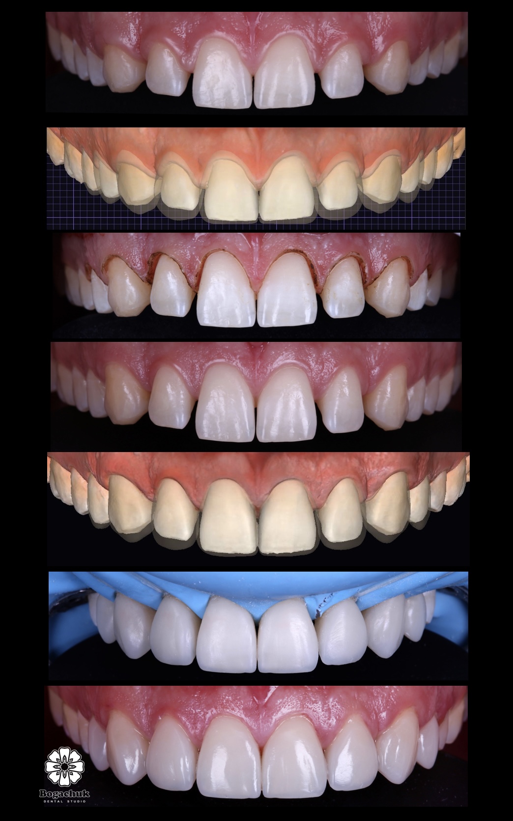 2. Демонстрація вінірування вестибулярної поверхні фронтальної групи верхньої щелепи (13-23)
