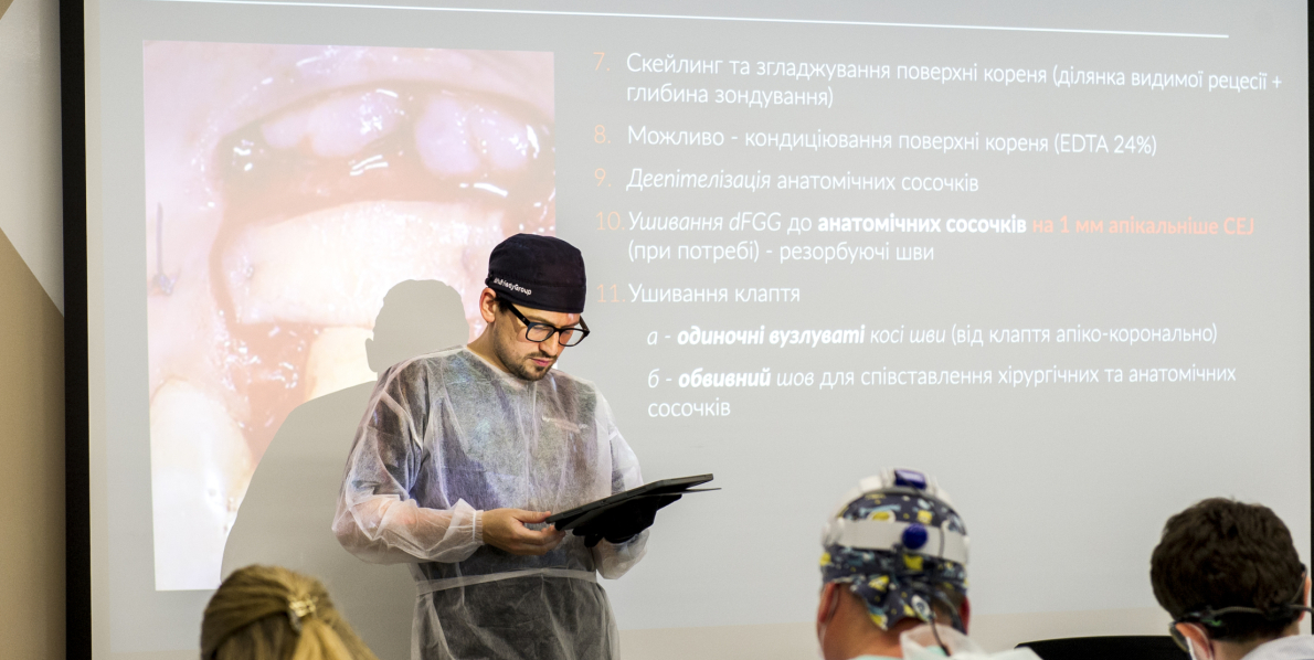МАЙСТЕР-КЛАС “ХІРУРГІЧНІ ТЕХНІКИ ЗАКРИТТЯ РЕЦЕСІЙ НА ЗУБАХ ТА ІМПЛАНТАТАХ”